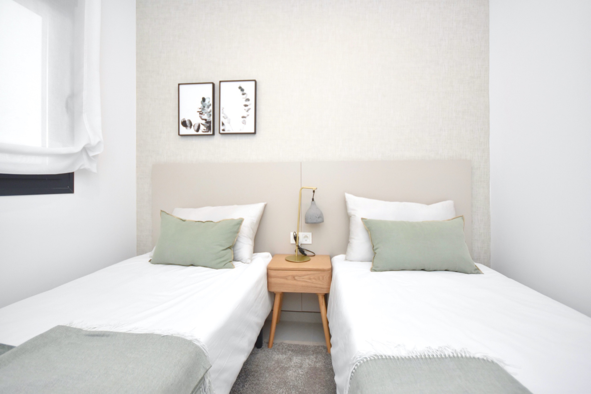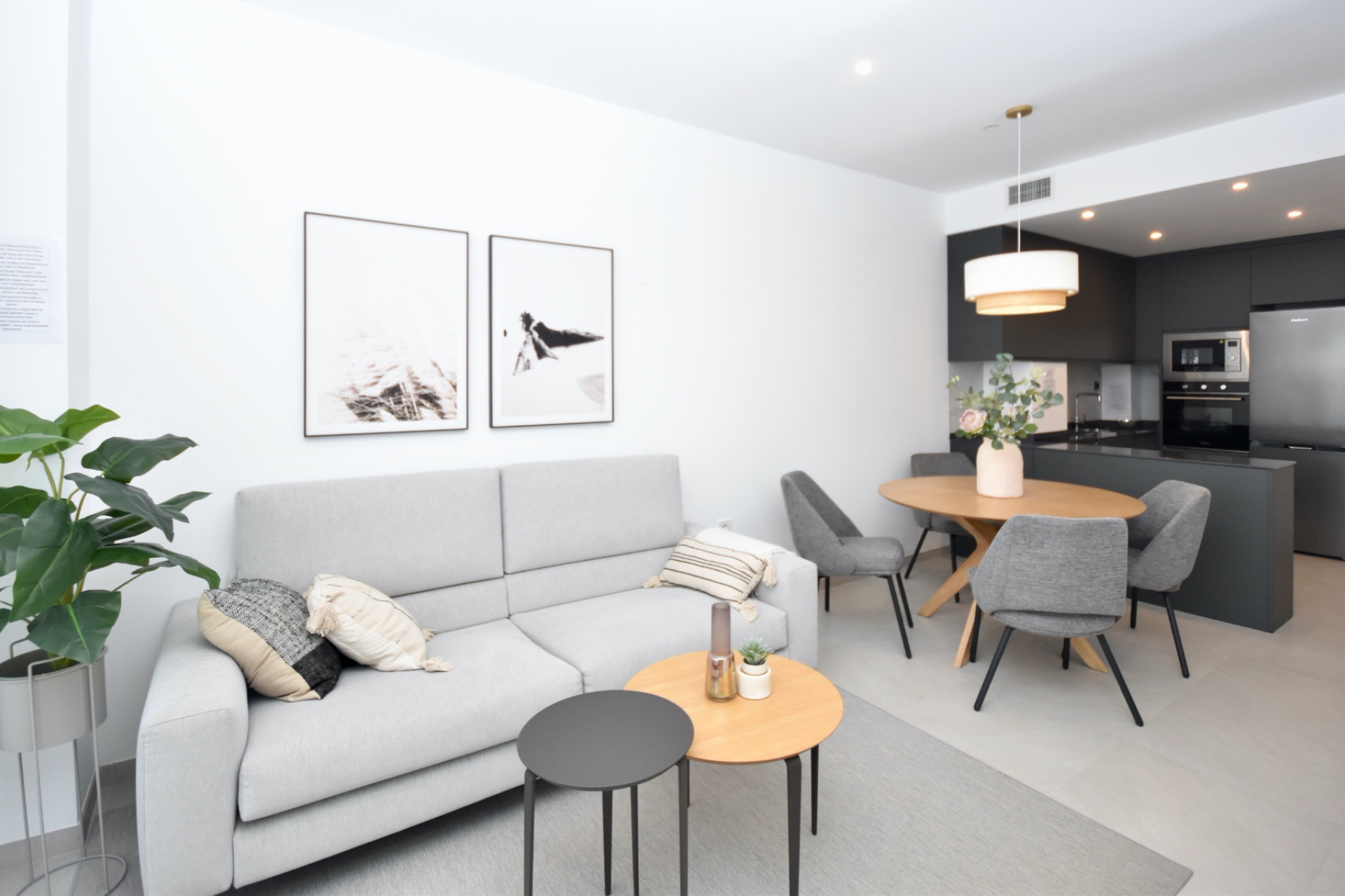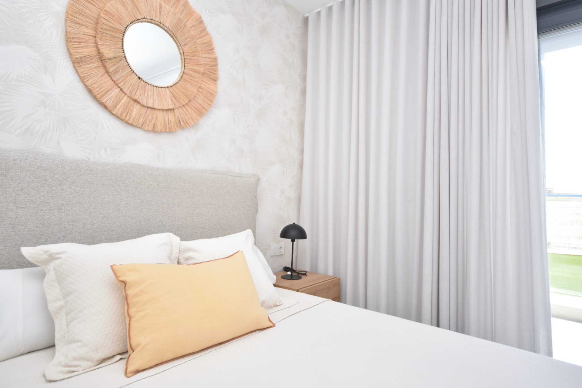 Kompleks mieszkalny składa się z apartamentów z 2 lub 3 sypialniami i 2 łazienkami, wszystkie z dużymi tarasami i widokiem na Morze Śródziemne. Orientacja południowo-wschodnia. Wszystkie apartamenty posiadają przestronne tarasy z widokiem na morze, prywatne ogrody na parterze oraz solaria na piętrach penthouse’ów, do których można wejść z wnętrza domu.