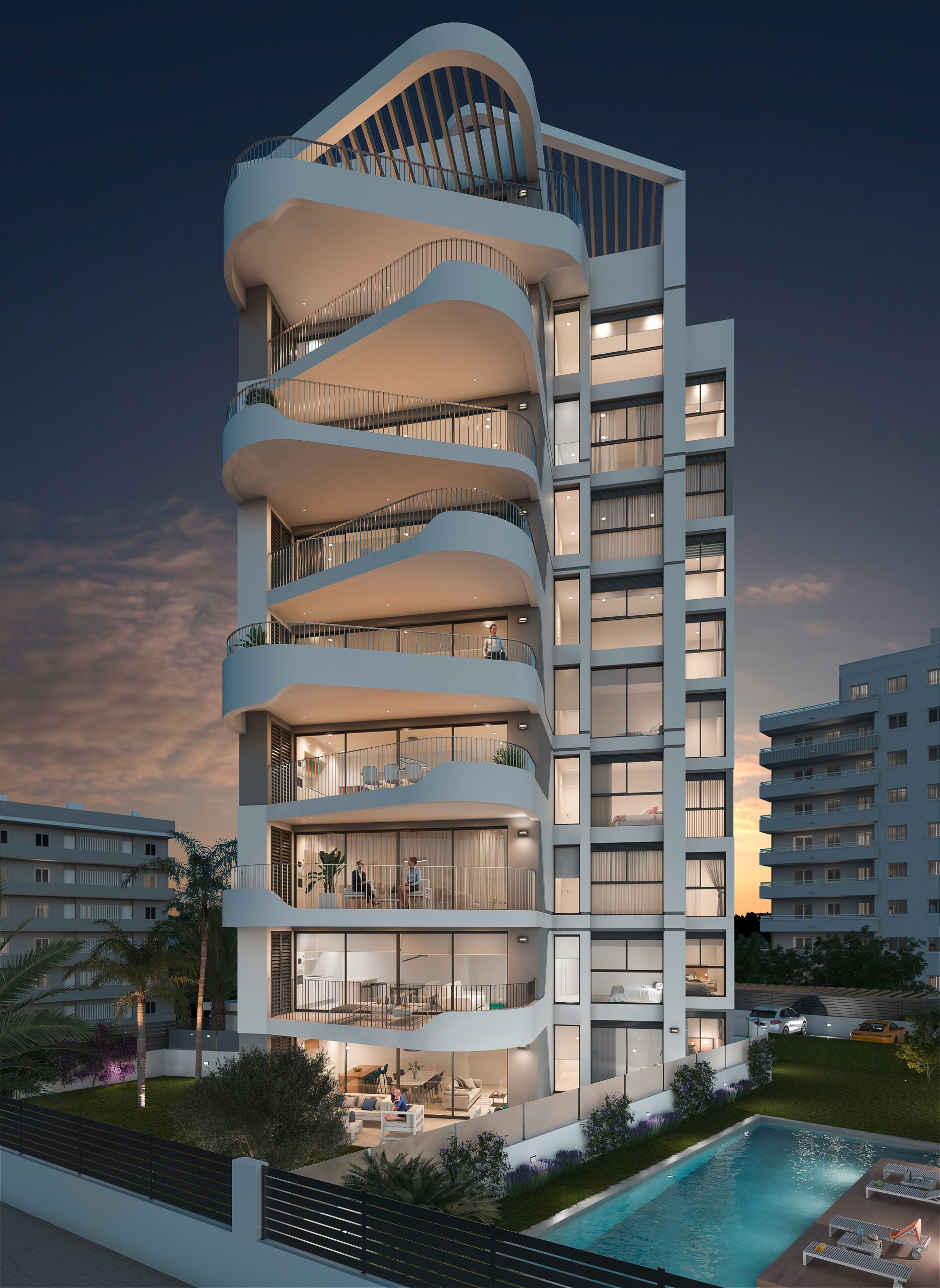 Luksusowy kompleks składający się z 9 apartamentów, zlokalizowany w Guardamar, z widokiem na rzekę Segura i w odległości spaceru od portu, sklepów, barów i restauracji oraz lokalnych plaż z Błękitną Flagą. Ten luksusowy kompleks oferuje apartamenty z 3 sypialniami i 2 łazienkami, wykończone najwyższej jakości, rozmieszczone na parterze z ogrodem/tarasem, antresoli z tarasem i penthouse’ie z prywatnym solarium na dachu.